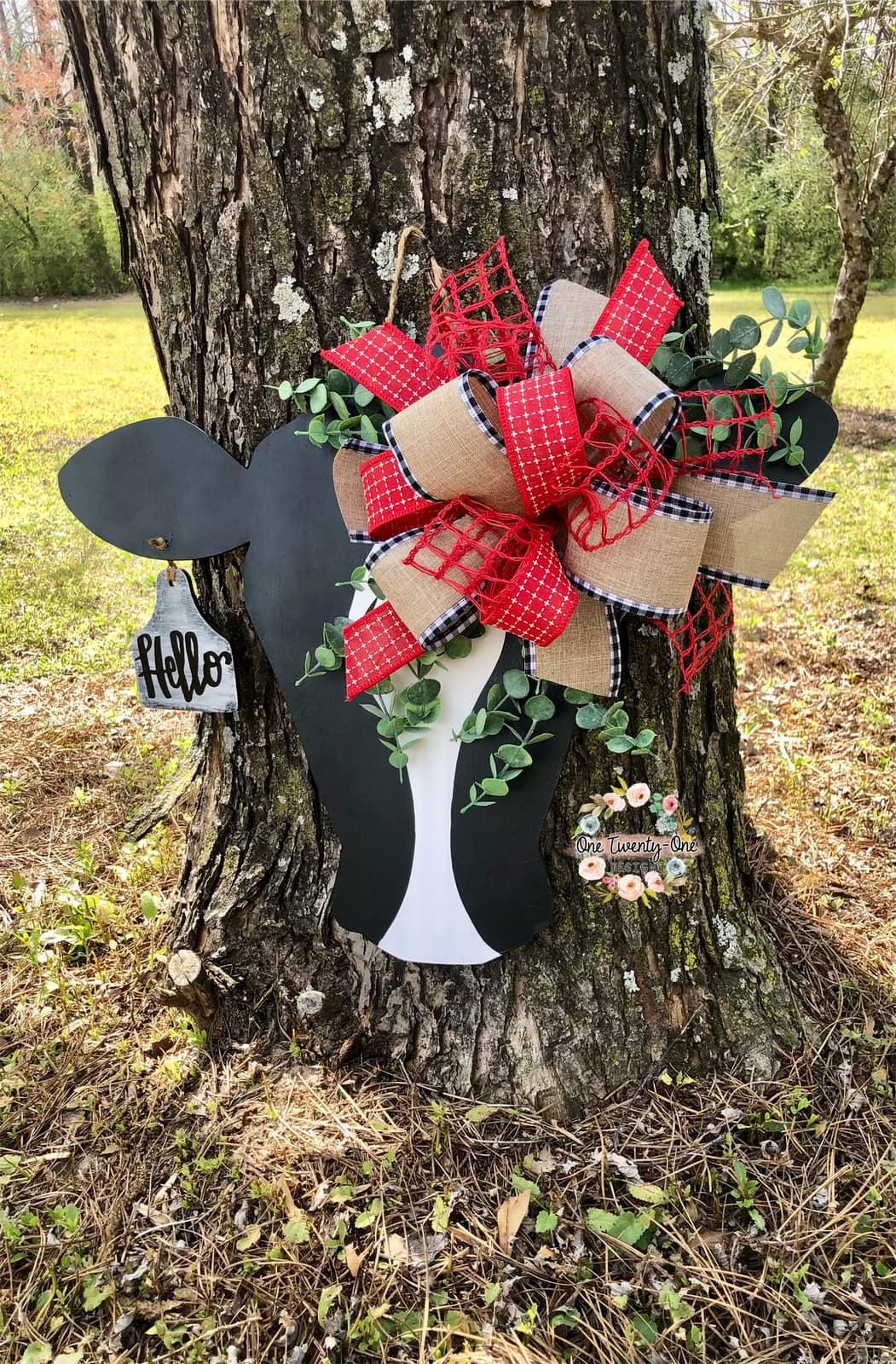 This hand-painted door hanger is crafted from premium 1/4" birch wood and measures approximately 18" wide x 22" tall — the perfect size to add a pop of personality to your front door.